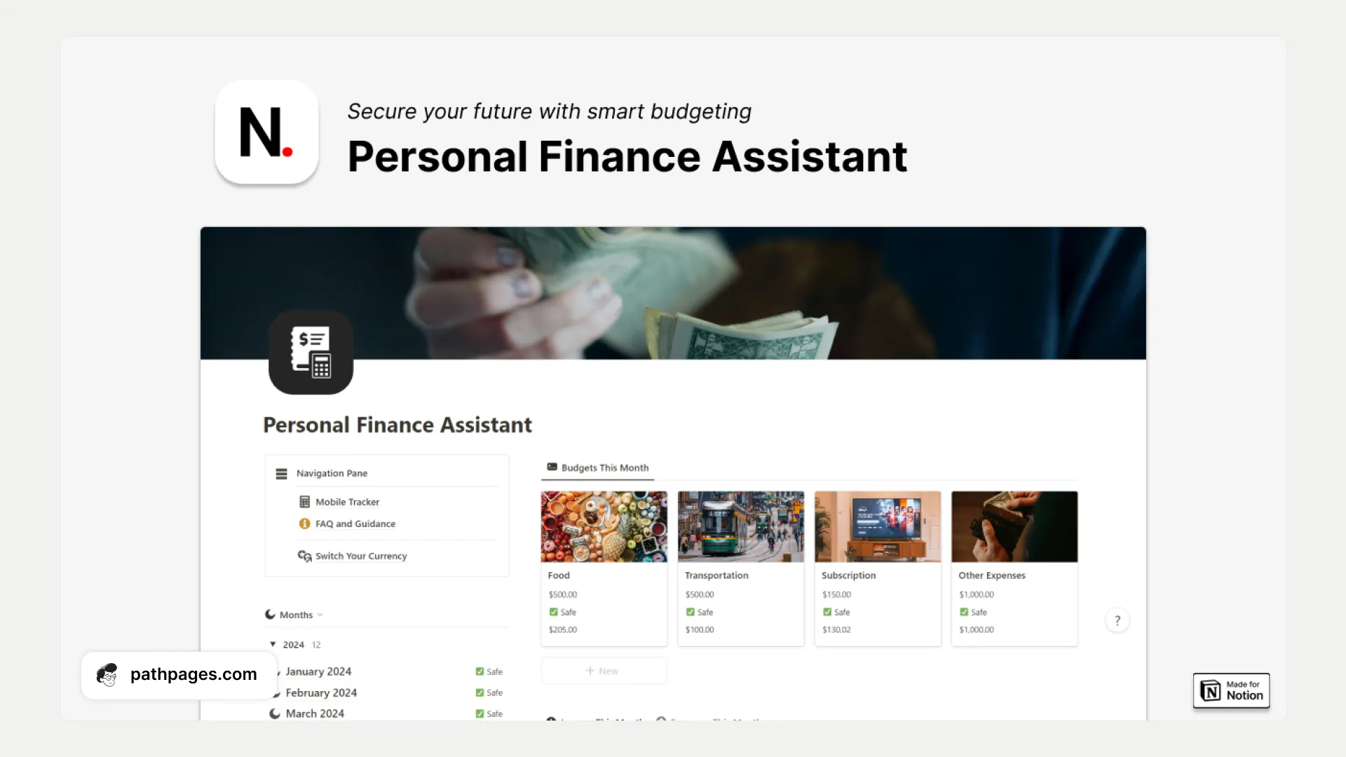 Notion is an all-in-one workspace that makes managing your finances easy and personalized. It combines powerful tools like databases, templates, and linked pages, letting you track everything from income to savings in a way that works for you.